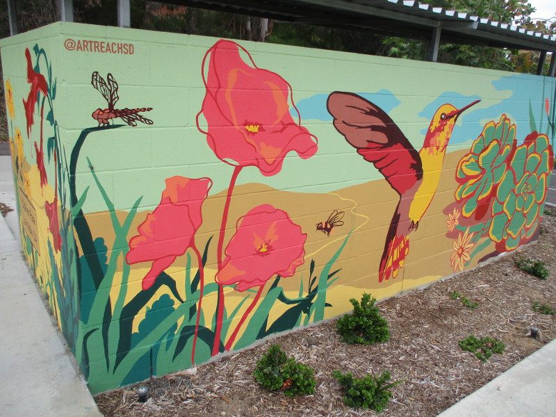 I found an article about the mural’s creation. It was a project of ArtReach, completed last year in partnership with the City of La Mesa. More than forty community members helped to paint it!