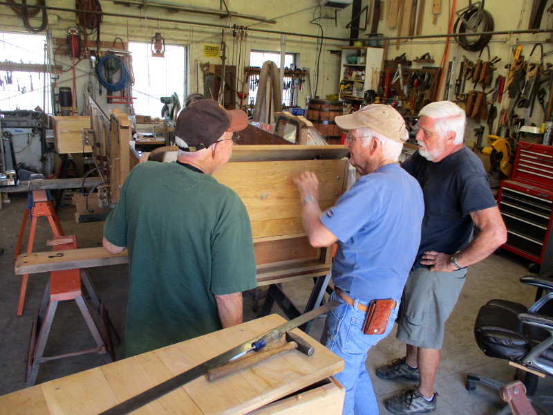 The retired volunteers, working on the project, let me step into the wheelwright shop to see exactly what they’re up to.