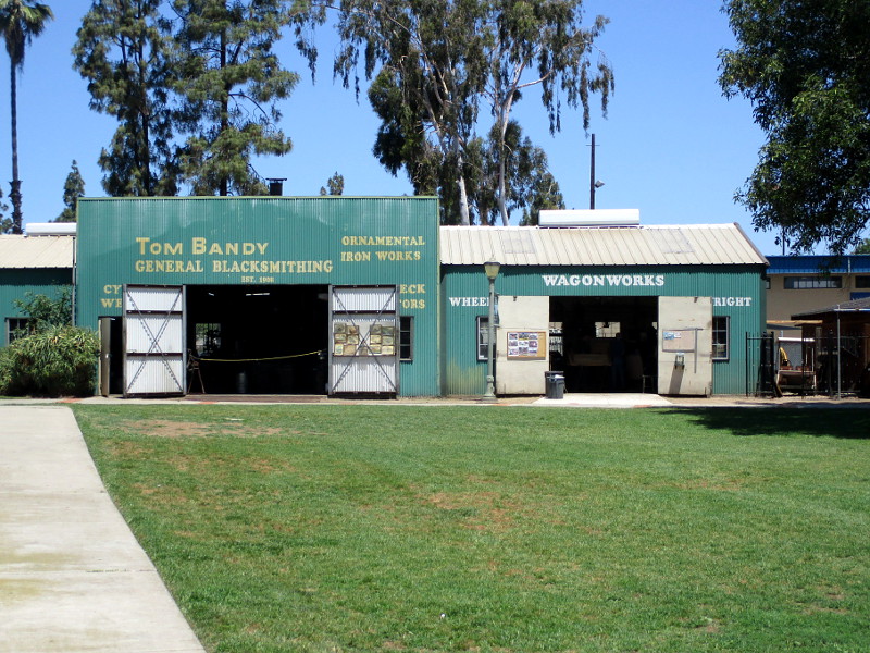 First, here’s the old blacksmith and wagonworks building on the Escondido History Center‘s Heritage Walk, where the chuck wagon is being built…