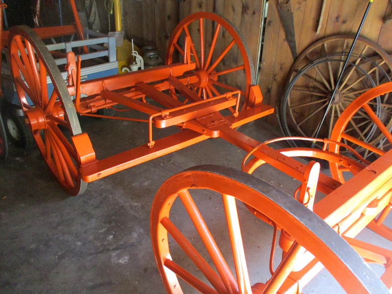In the next photo, the wooden section that folds down near the front of the wagon is the foot board. The wagon’s seat will be mounted there behind it.