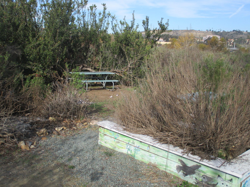 The community park, full of native vegetation and art, was developed by the San Diego River Park Foundation. It’s no longer listed on the foundation’s website. For all intents and purposes, it appears to have been abandoned.