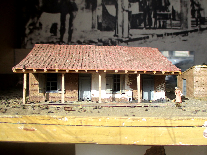 The above photograph shows a model of an early Old Town adobe. I’m not sure which adobe. There are no labels.