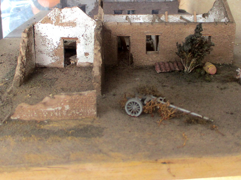 Peering into the display case, I found another great model. This one appears to depict an adobe in decay. I had to crop the photo because a mirror behind it was showing the shirt of yours truly.
