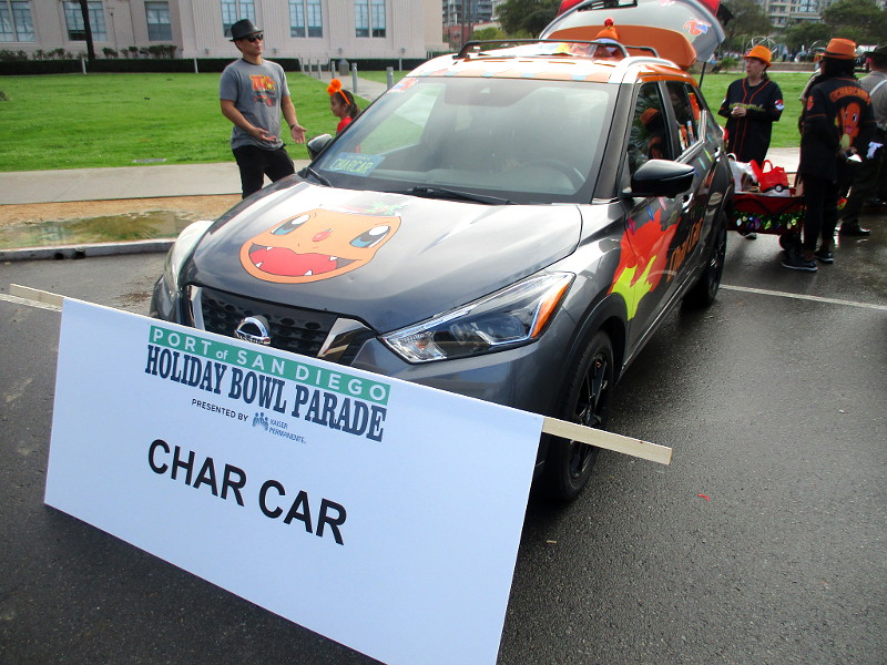 I ran into these good people this morning before the start of San Diego’s annual Holiday Bowl Parade. They operate the Char Car!