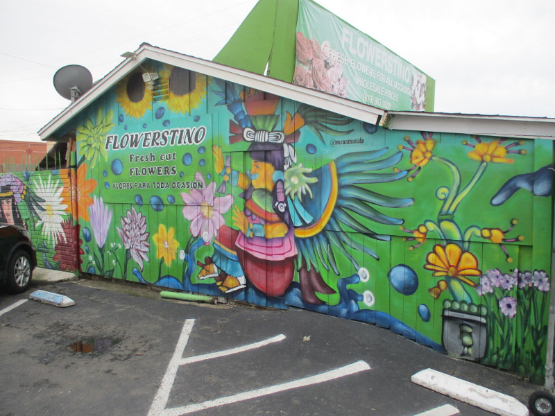 Without a doubt, these two murals delight the eyes of people driving down Third Avenue in south Chula Vista. Very beautiful artwork is painted on two sides of the Flowers Tino flower shop!