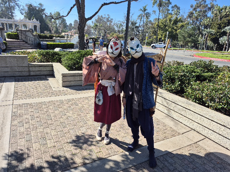 They were kind enough to pose in full Japanese costume for a fun photo! Their fox masks come from Japanese folklore.