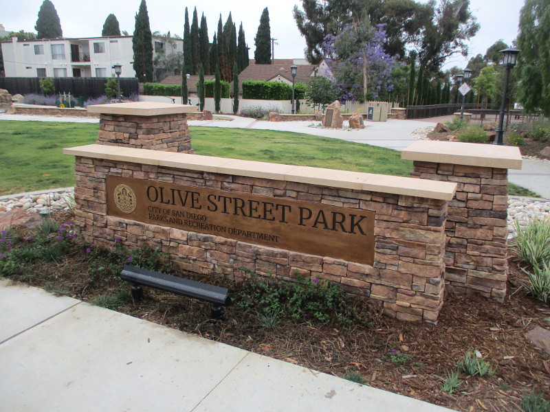 You might remember how, years ago, KUSI television consumer advocate Michael Turko sought to develop a neglected plot of land on Olive Street in Bankers Hill into a city park. According to this webpage, in 1909, the Ford, McKee, and Woods families generously donated the 0.6-acre property to the city for the specific purpose of creating a public park for the community to enjoy.