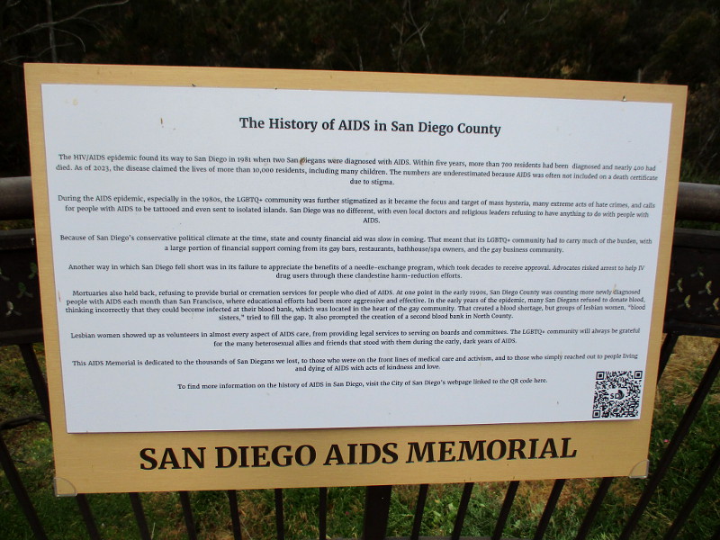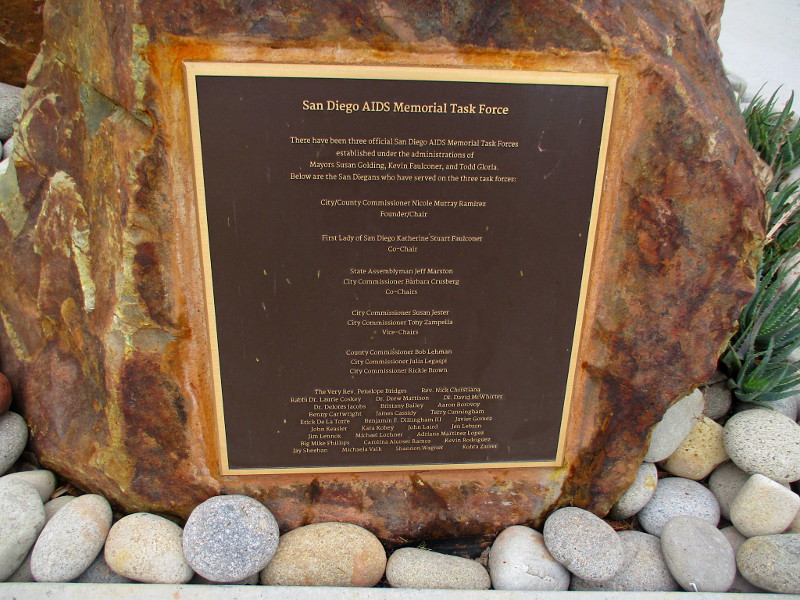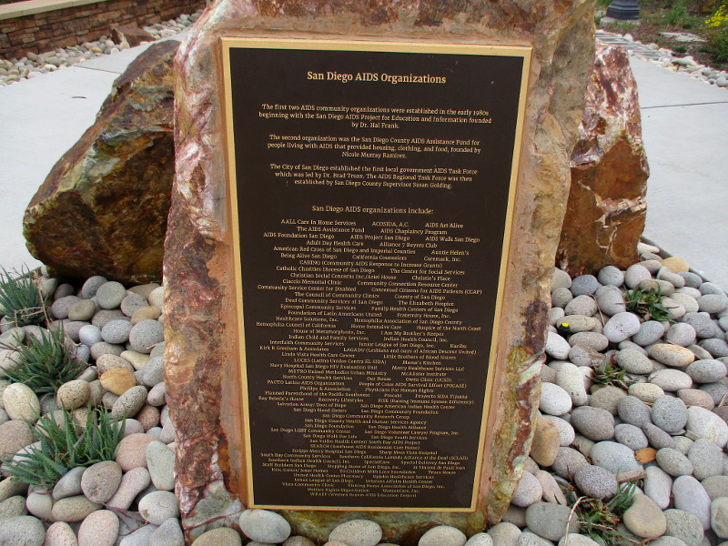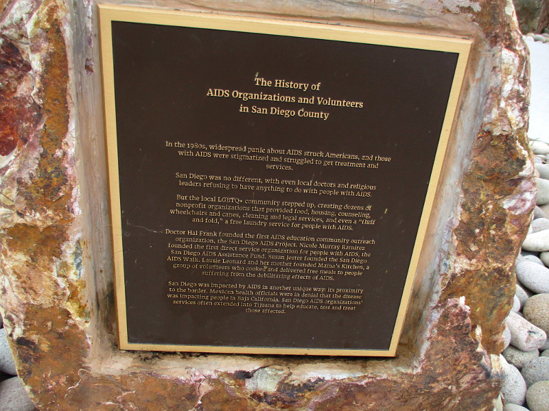 With various plaques and signs, the memorial remembers the over 8,000 San Diegans who have lost their lives to HIV/AIDS, and honors those who’ve supported them and have worked to defeat the devastating disease. Many compassionate people and organizations throughout San Diego County are recognized.