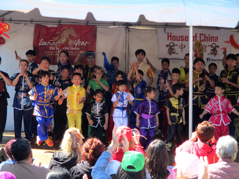 After the National Anthem was sung by young Norah Lu, students from the San Diego Wushu Center performed up on the stage. Their Chinese martial arts performances were incredible. Some of the students looked like Jet Li, effortlessly jumping and twisting their bodies in mid-air, wowing the audience. Very exciting!