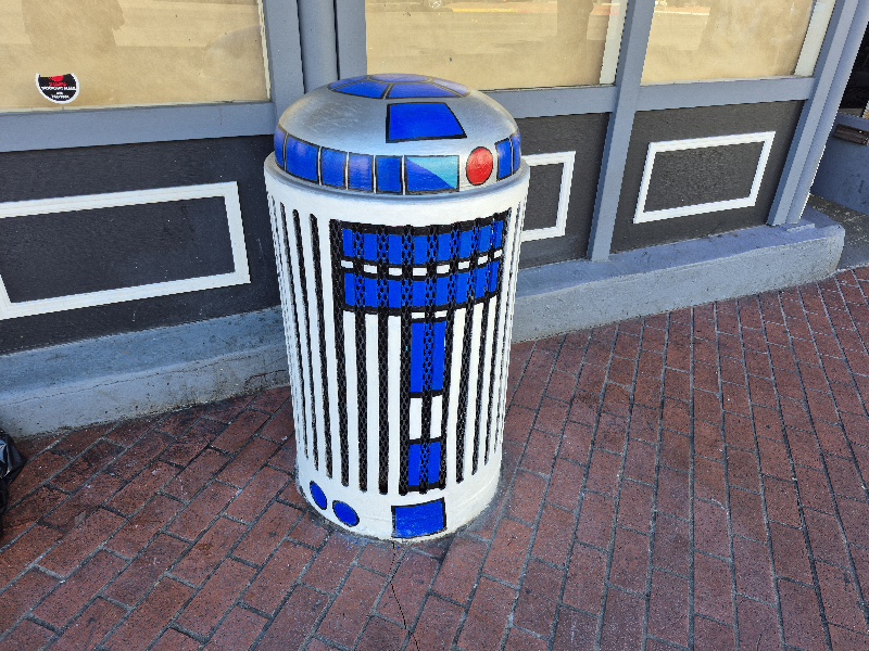Next, a sidewalk vent structure was painted to appear like Star War’s R2-D2!