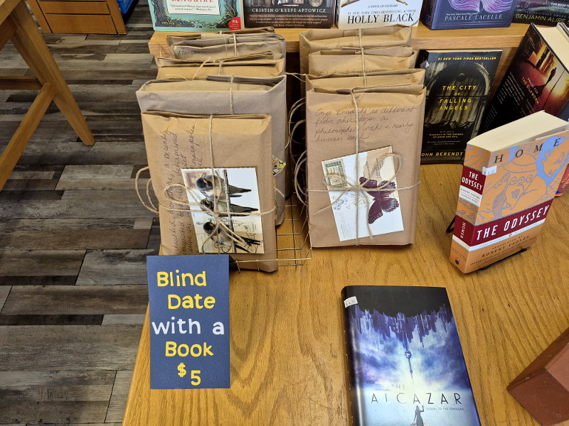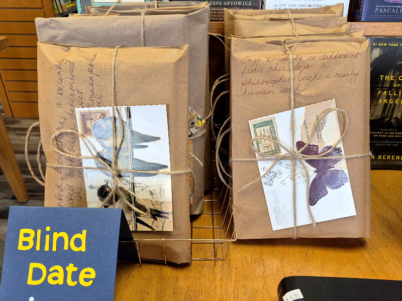 For your blind date, simply head over to Jane & Evie’s Used Books store at 323 North Coast Highway and choose one of the plainly wrapped packages pictured above.