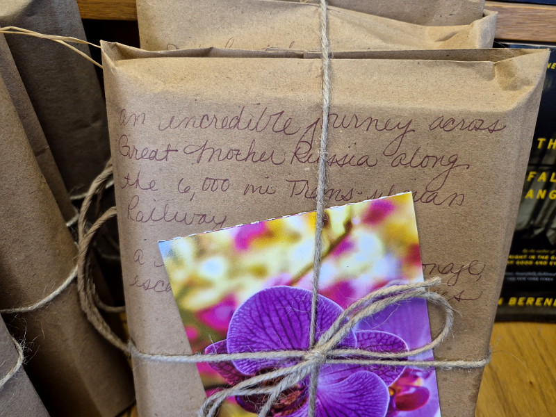 You can’t judge any book by its cover. Particularly in this instance. Fortunately, there are written clues on the wrappings that provide an idea of what you might find inside. (You get a beautiful bookmark, too!)