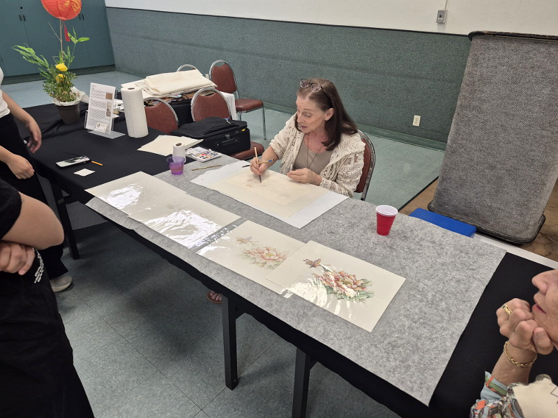 The event features original Chinese brush paintings by members of the Lung Hsiang chapter of the American Artists of Chinese Brush Painting. Admission is free. Most of the pieces on display are for sale.