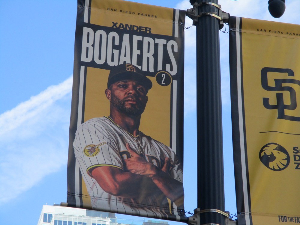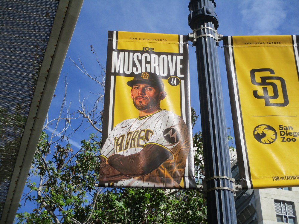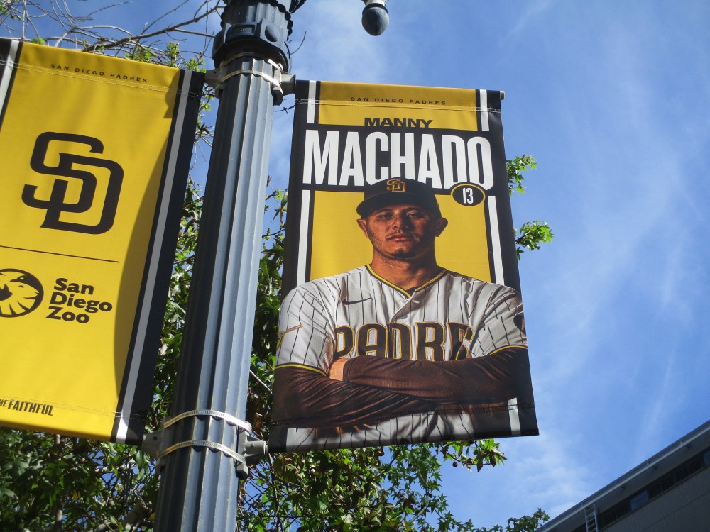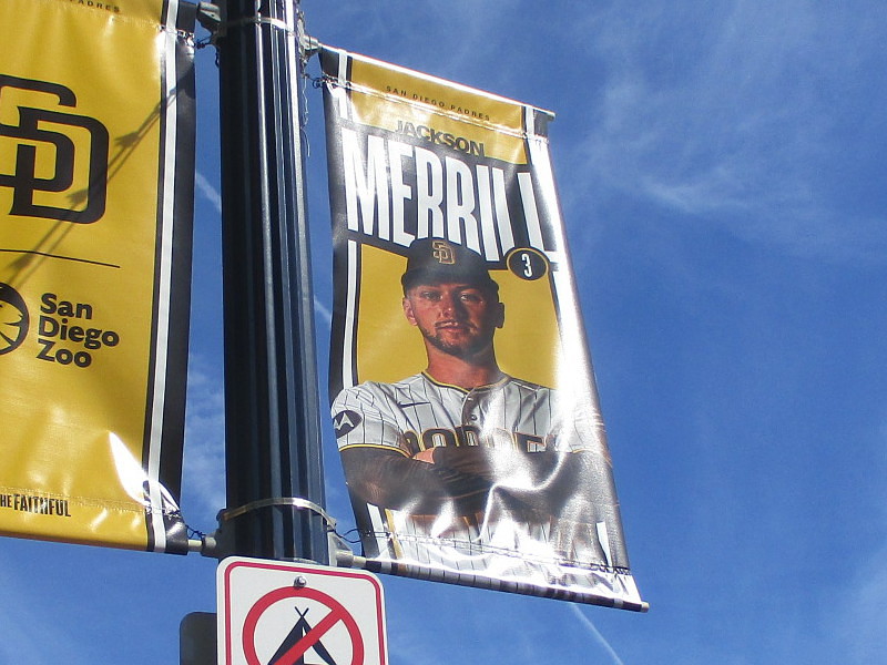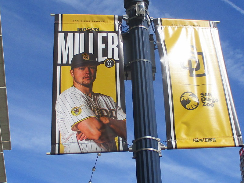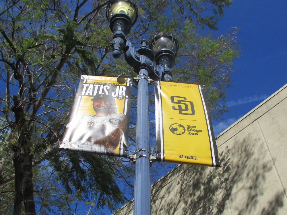 I noticed, while walking near Petco Park today, that the latest set of Padres player banners have been put up on street lamps in East Village.