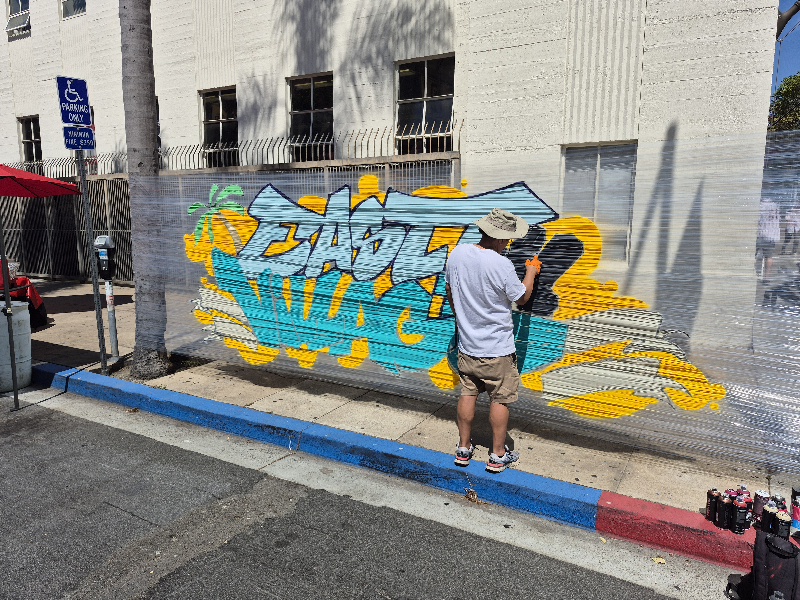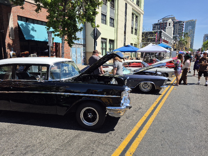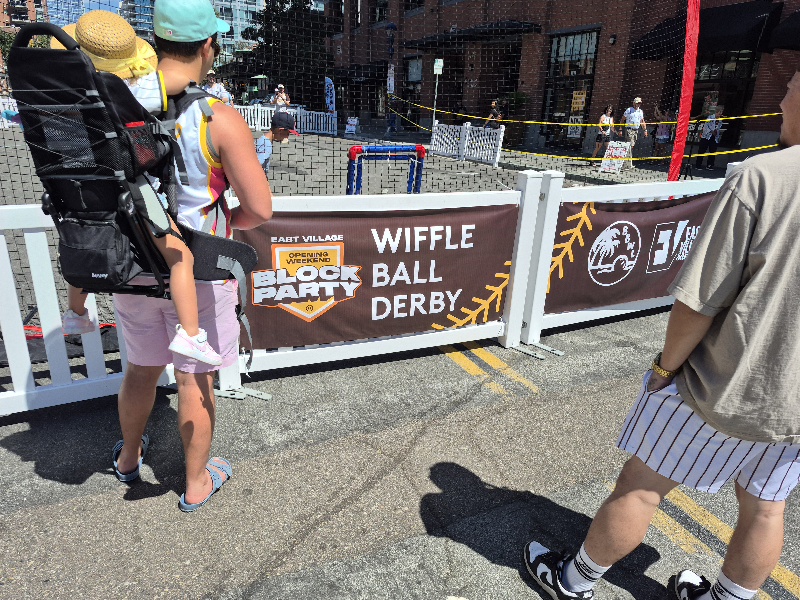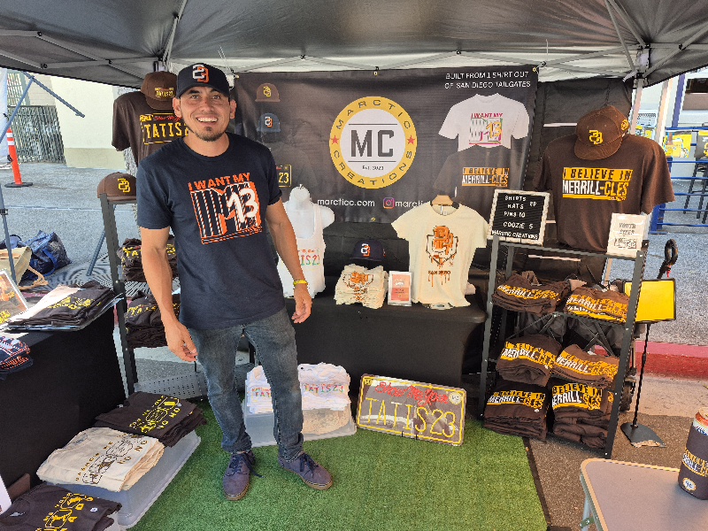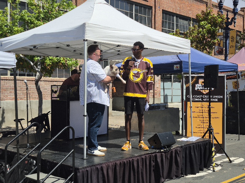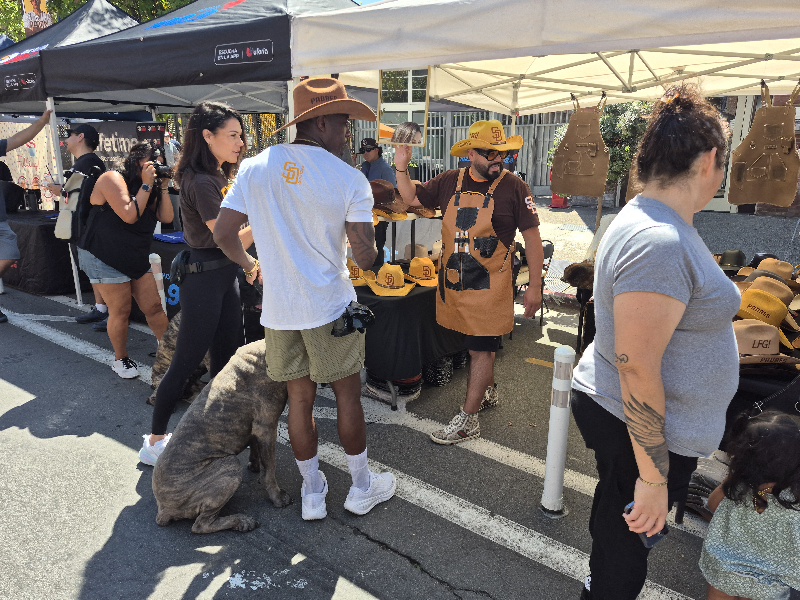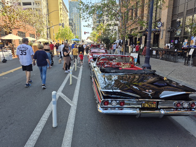Lots of fans were wandering up and down several blocks of J Street just north of Petco Park. There was live music, dogs dressed like Padres fans, cool lowriders in a row, food, kids making swag chains, a spray paint artist, and even a wiffleball derby!