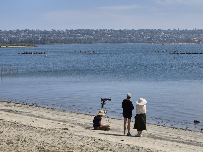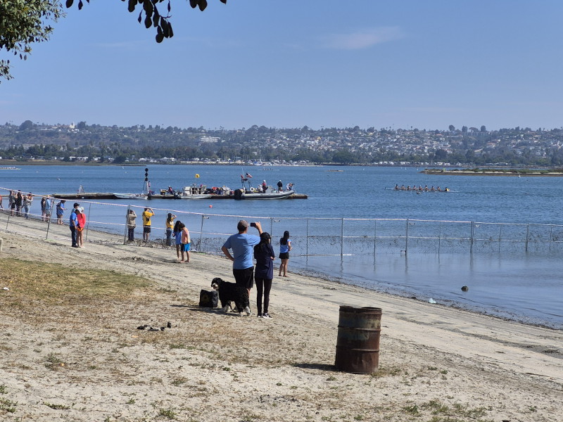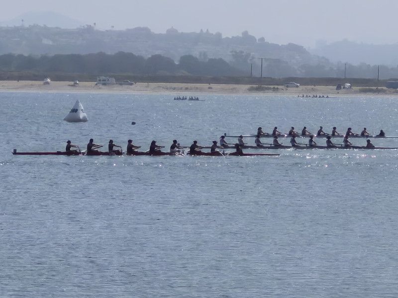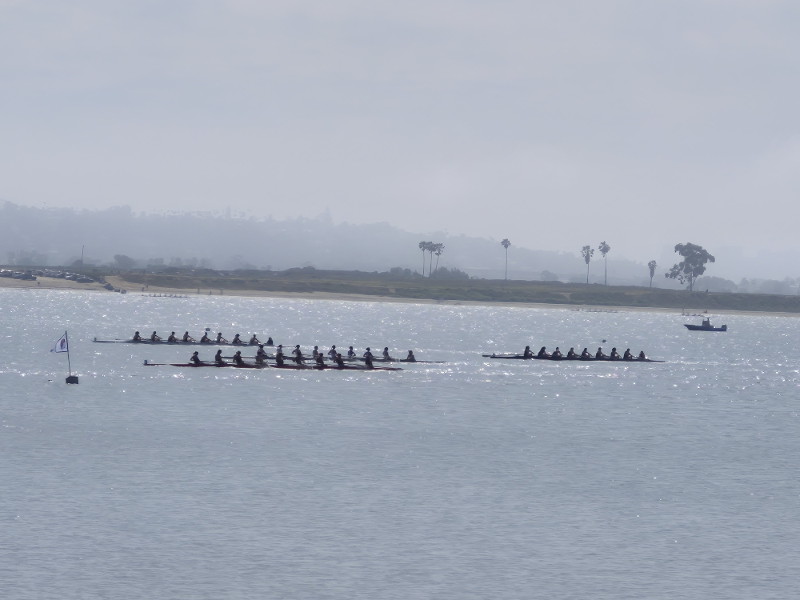 Late this morning I spent some time watching the final day of the 53rd San Diego Crew Classic on Mission Bay. I was walking near Ski Beach when I saw the rowers, so I crossed over to Crown Point and looked on from afar with other members of the public who hadn’t purchased a ticket.