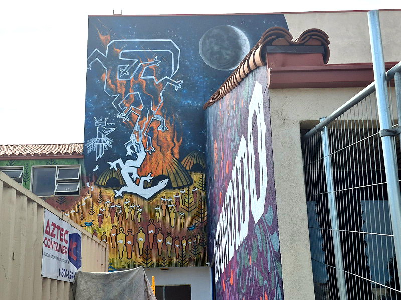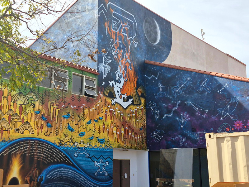 I recently read that a huge new mural was being painted outside the Escondido Public Library during its major renovation. So I had to swing by to see what I might see!