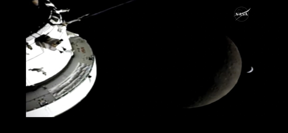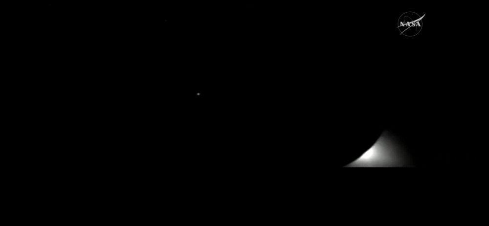 And here’s the Earth–that tiny bright sliver–about to pass behind the moon as the Artemis II mission moves around the moon: