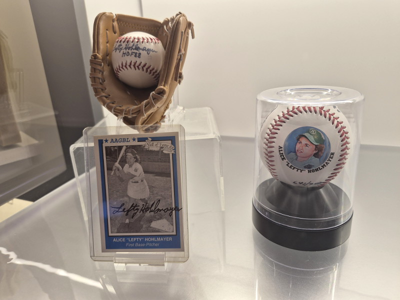 I noticed one shelf celebrates Alice “Lefty” Hohlmayer, a longtime Bonita resident who played in the All-American Girls Professional Baseball League from 1946 to 1951. She was inducted into the Women’s Hall of Fame in 2005.