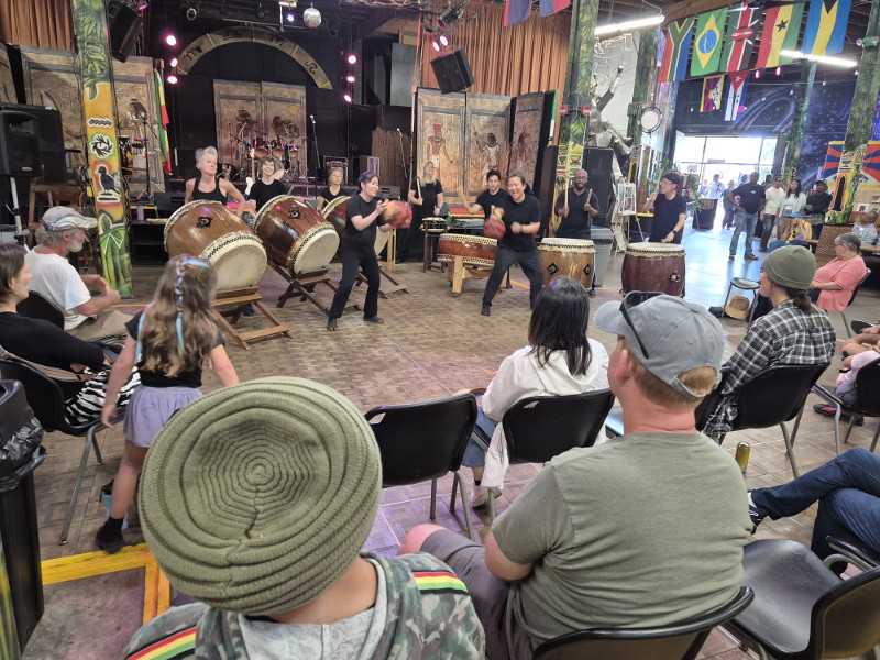 Organizations and businesses who support the environment were lined up behind the center, while vendor canopies and diverse cultural entertainment took place on the open grass nearby. Inside the WorldBeat Cultural Center there was more life to experience, including the rhythms of San Diego Taiko that I enjoyed. Visitors could also walk through the center’s lush Ethnobotany Sanctuary Garden. (I’ll be blogging about the garden later.)