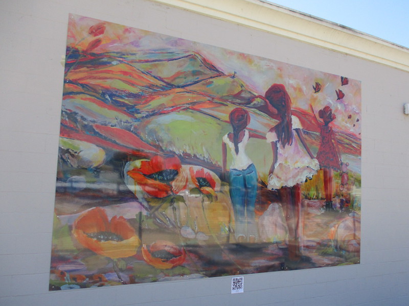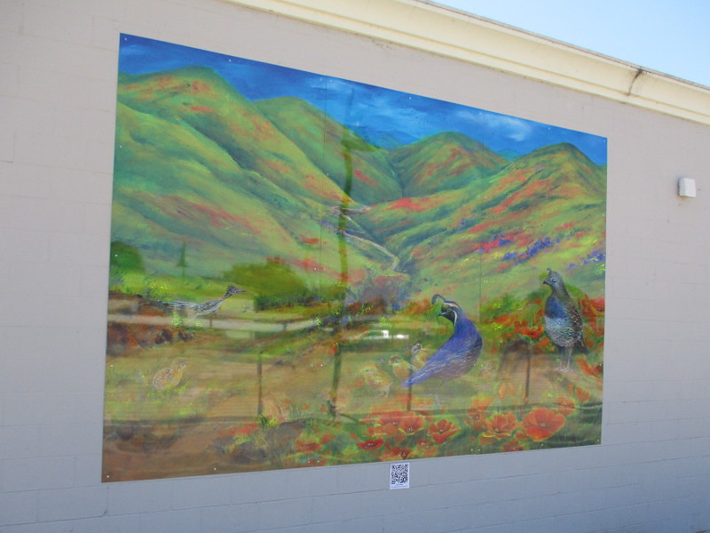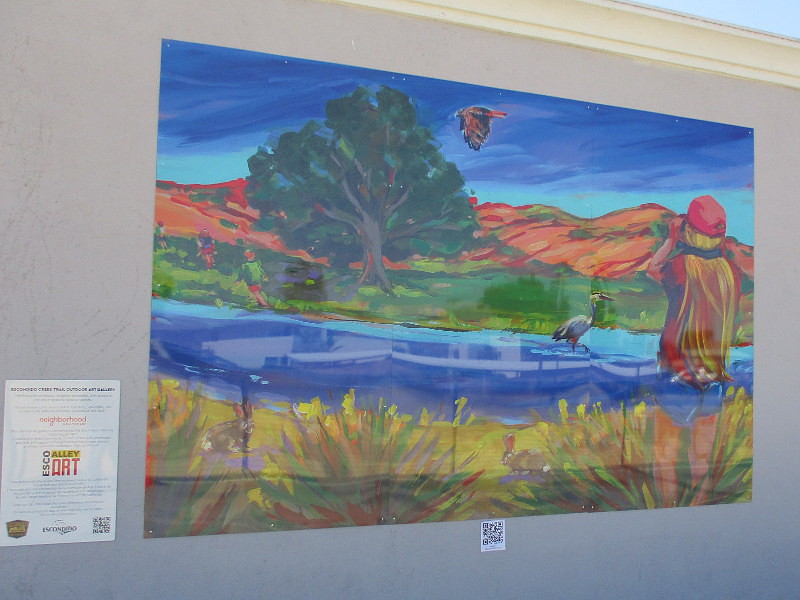 The murals are located on the Neighborhood Healthcare building at 460 North Elm Street. They face the Escondido Creek Trail–a pedestrian and bike path that is presently undergoing improvement. (I noticed some of the improvements during my walk and will blog about that coming up.)