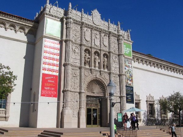 Visitors near entrance to the San Diego Museum of Art in Balboa Park.