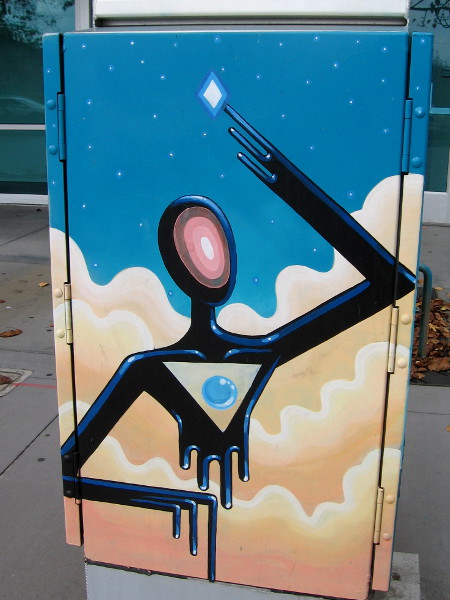 Transinfinite Gems. Love Your Soul. Blessings and Love.A creatively painted utility box near a National City street corner. Is that a can of soda?Someone just let loose with many strokes of color on this transformer box!This cool street art definitely attracts the attention of people walking down the sidewalk!An abstract human figure that drips ink into a river. This fantastic image appears to be full of symbolism.More cool designs on a series of electrical boxes. National City, in San Diego’s South Bay, has lots of great street art!A contrast of real leaves and painted leaves.Barren trees in a purple-blue sky.Another side of the same box.Branches from sky and ground, like grasping, skeletal fingers.