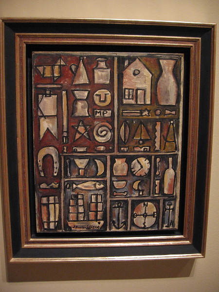 A visitor to the San Diego Museum of Art explores Modern Masters from Latin America, from the Perez Simon Collection.Aqueduct, oil on canvas, 1918. Diego Rivera, Mexican, 1886-1957.Ship Graveyard, oil on canvas, 1930. Benito Quinquela Martin, Argentinian, 1890-1977.Crying Woman, pyroxylin on Masonite, 1944. David Alfaro Siqueiros, Mexican, 1896-1974.Death in Life or Black Christ, acrylic on plywood, 1963. David Alfaro Siqueiros, Mexican, 1896-1974.Young Girls with Shells, Duco on canvas, 1945. Mario Carreno, Cuban, 1913-1999.City of Quito, oil on canvas, ca. 1980. Oswaldo Guayasamin, Ecuadorian, 1919-1999.The Mexican or Young Woman with Rebozo, oil on canvas, 1935. Agustin Lazo, Mexican, 1896-1971.House Eight, oil on canvas, 1978. Fernando de Szyszlo, Peruvian, 1925-2017.The Native, oil on canvas, ca. 1936. Alfredo Ramos Martinez, Mexican, 1871-1946.Girl from Tehuacán, Lucha María or Sun and Moon, oil on Masonite, 1942. Frida Kahlo, Mexican, 1907-1954.Constructive Composition in Planes and Figures, oil on canvas, 1931. Joaquin Torres-Garcia, Uruguayan, 1874-1949.Concert, oil on canvas, 1941. Emilio Pettoruti, Argentinian, 1892-1971.Peasant, Industrial, and Intellectual Work, oil on wood, 1956. Jorge Gonzalez Camarena, Mexican, 1908-1980.World’s Highest Structure, oil on canvas, 1930. Jose Clemente Orozco, Mexican, 1883-1949.Green Structures, oil on canvas, 1964. Gunther Gerzso, Mexican, 1915-2000.Study for The March of Humanity, oil on recovered plywood, ca. 1968-69. David Alfaro Siqueiros, Mexican, 1896-1974.Portrait of Maria Felix, oil on canvas, 1948. Diego Rivera, Mexican, 1886-1957.