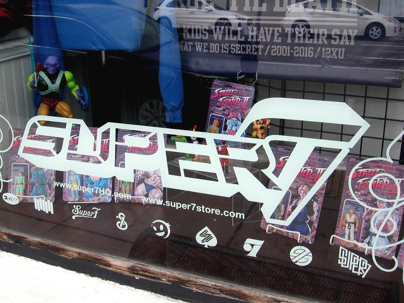 A banner is up near the Seaport Village trolley station promoting Stan Lee’s Alliances on Audible.The Power to Change Changes Everything.An advertisement slapped on a downtown wall for Marvel Hip-Hop Variants on Vinyl.The American Comedy Co. in the Gaslamp has their 2019 Comic-Con lineup on display near their entrance.The window of the Super7 pop-up location is packed full of cool toy figurines.“Revenge of the Boodega” is the theme of the Super7 pop-up shop during 2019 Comic-Con. Their funny Corner Monstore will feature Universal Monster merchandise.Canopy for the Prime Video Blue Room appears during Amazon’s offsite construction a couple weeks before 2019 San Diego Comic-Con.Another photo of early construction at Amazon’s huge Comic-Con offsite.A large, mysterious edifice is being built at the Amazon offsite! (Kind of reminds me of that Erector Set I played with as a kid.)