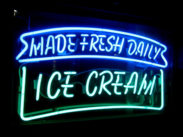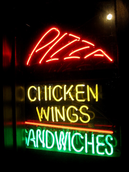 Neon words above downtown San Diego cafe door read Pastries Espresso Cappuccino.Patterned neon adds pizzazz to marquee of Ghirardelli Ice Cream and Chocolate Shop on Fifth Avenue.Bub’s near Petco Park has its brilliant red name in this window.Neon in the distinctive Gaslamp Quarter landmark sign, which is instantly recognized by both locals and tourists.Classic neon signage is often seen in pawn shop windows.The Golden West Hotel near Horton Plaza has a flashy neon sign above its main entrance.Glowing neon Bail Bonds advertisement at this open-all-night Inmate Information Center.Off the Wall Tattoos has an “in the window” neon sign.Lots of super colorful neon at the San Diego Bike Shop on C Street.Neon words and their reflections broken up by a security grill in front of one store.Great Wall Express located on Broadway downtown has yummy Louisiana Fried Chicken, as you can see! (Admittedly, I eat too much of it.)Lucky’s Lunch Counter has a unique sign that really stands out.Crab Hut invites hungry passersby with its neon logo.Eye-catching neon sign informs everyone that pizza, chicken wings and sandwiches are on the menu.An awesome ice cream cone creatively rendered using neon. Okay, I suppose this doesn’t count as a word.These words instantly got my attention! I hope I have room after all that fried chicken!