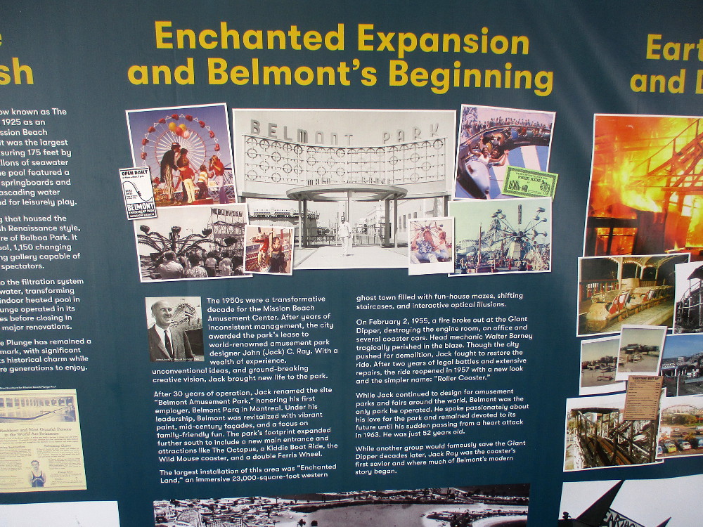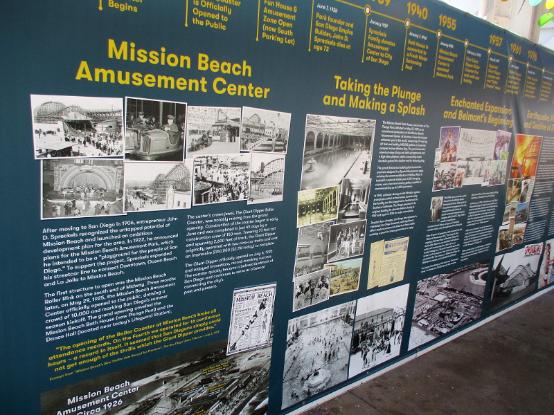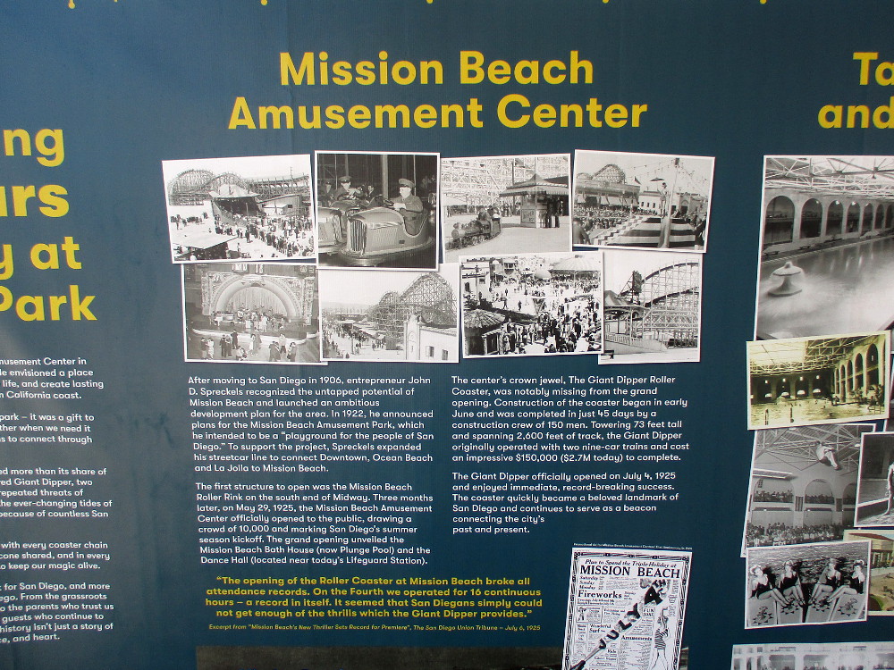 In 1925 the beachside amusement park opened as the Mission Beach Amusement Center. Today, an exhibit under Belmont Park’s beloved Big Dipper wooden roller coaster celebrates one hundred years of history!