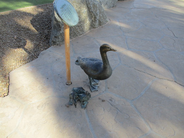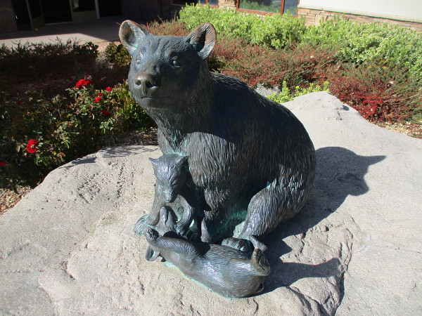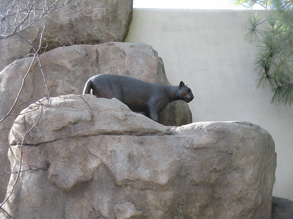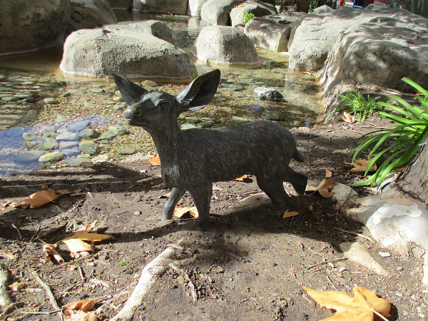 The wildlife sculptures were created by award-winning El Cajon artist Robert G. Berry, who began as a taxidermist before turning animal sculptor. His work can also be enjoyed at the San Diego Zoo, Cypress Gardens in Tampa, Florida, and at the Mission Trails Regional Park Visitor and Interpretive Center, which is also in San Diego. To see a few examples of his half dozen bronze sculptures at Mission Trails, click here!