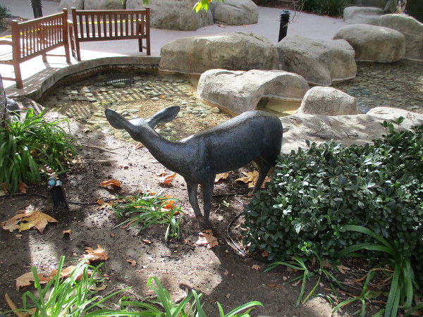 Public art in Presidio Park remembers a White Deer named Lucy that escaped from the San Diego Zoo.