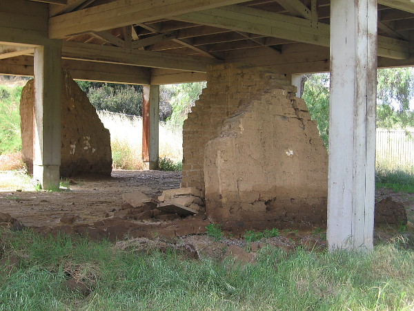 That second house today is in ruins. The crumbled adobe walls are protected by a steel fence and sheltering roof. A broken down corral can still be observed in the field to the east, as you can see in a couple of my photographs.