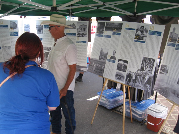 San Diego Avenue was full of color and activity during my walk on the Saturday of Founders Day weekend.A banner on an Old Town lamp post remembers the year 1769, when Junípero Serra founded a Spanish mission in San Diego.This musician smiled for a blogger who happened to walk by.The San Diego Model A Ford Club had lots of vintage cars on display during the event.Root beer floats could be enjoyed at this outdoor Western saloon!The San Diego History Center had a display detailing important moments in San Diego’s 250 year history.Early people, events and developments in San Diego’s history include the native Kumeyaay, the Spanish arrival, and the establishment of Mission San Diego de Alcalá in 1769.Frontier musicians play banjo, guitar and washboard.Historical reenactors from Old Town’s African Latin Museum participated in Founders Day.SDSU Archaeology had a table near the Whaley House Museum.San Diego State University Archaeology students once excavated behind the Whaley House, and found many interesting artifacts.Uncovered artifacts included bottles and various household items common in early San Diego.Write Out Loud had their Poe and Twain puppets roaming about during the cool event!Diverse people come together during Founders Day to celebrate our city’s complex and uniquely fascinating 250 years of history. During the opening ceremony, words of optimism were expressed for the future!