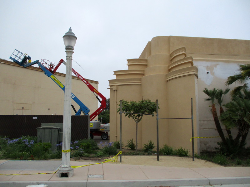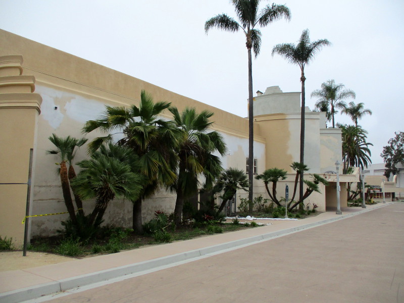 I noticed during my walk through Balboa Park this morning that the painting of the building is underway. The new color matches that of the recently painted San Diego Automotive Museum directly across Pan American Plaza.