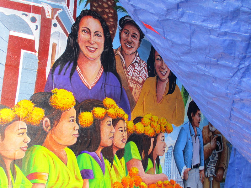 The mural memorializes “the life of Manuel “Memo” Cavada, a longtime community photographer who passed away in 2020 after having captured 50 years of local history.” It was painted by artists Guillermo Aranda, Sal Barajas and David Avalos.