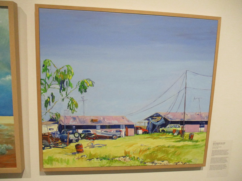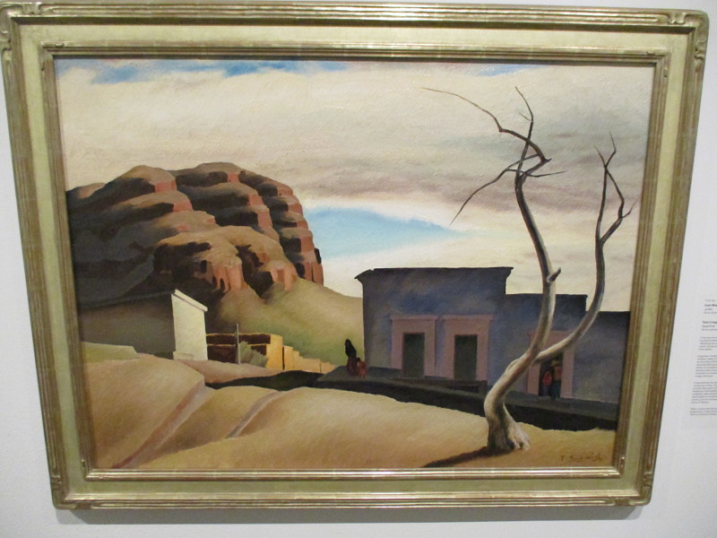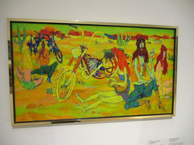 Guaymas, Tom Craig, circa 1937. Oil on canvas.Imperial Valley Housing, Carol Lindemulder, 2002. Oil on linen.Five O’clock Shadow, Brad Maxey, 2013. Oil on canvas.Hair #9 (Hippies and Bikers in the Borrego Desert), Harry Sternberg, circa 1970. Oil on board.Sun Goddess of the Computer Age, Armando Nuñez, 1997. Mixed media and acrylic on wood panel. (Armando Nuñez helped paint the first mural in Chicano Park, The Historical Wall, in 1973. He was co-founder of Centro Cultural de la Raza and designed the Barrio Logan gateway sign.)