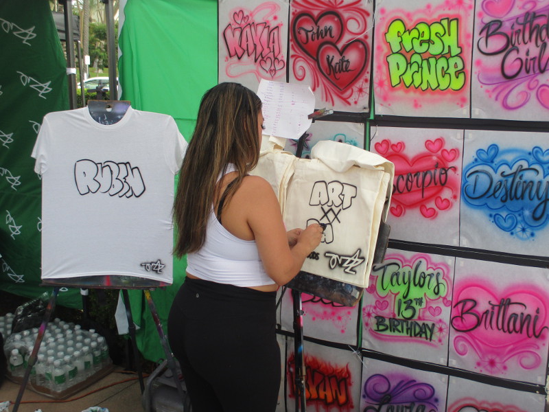 @GRASSHOPPERCV.OFFICIAL was airbrushing shirts and stuff at Chula Vista ArtFest.