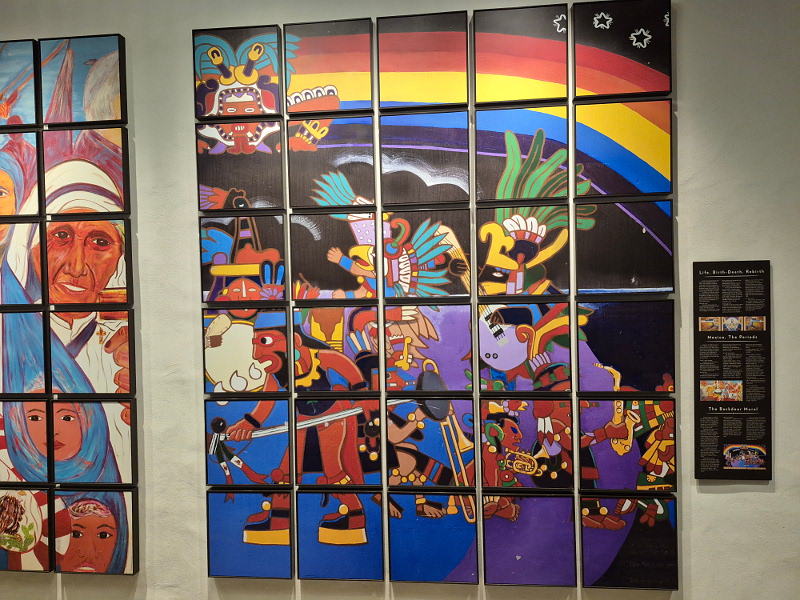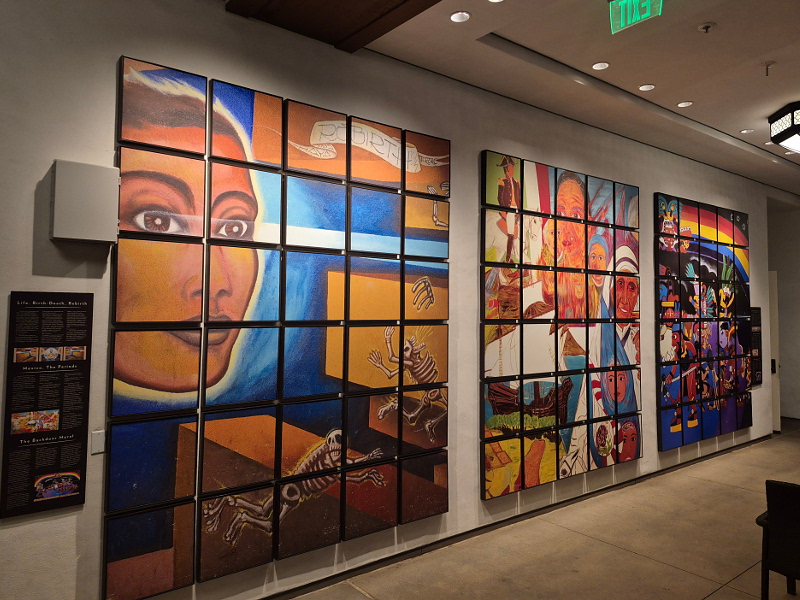 On the second floor of the Conrad Prebys Aztec Student Union at San Diego State University, memories are preserved just outside Montezuma Hall. Three historical murals that were painted on plaster at the old Aztec Center, which was demolished in 2011, live on today as tiled photographs.