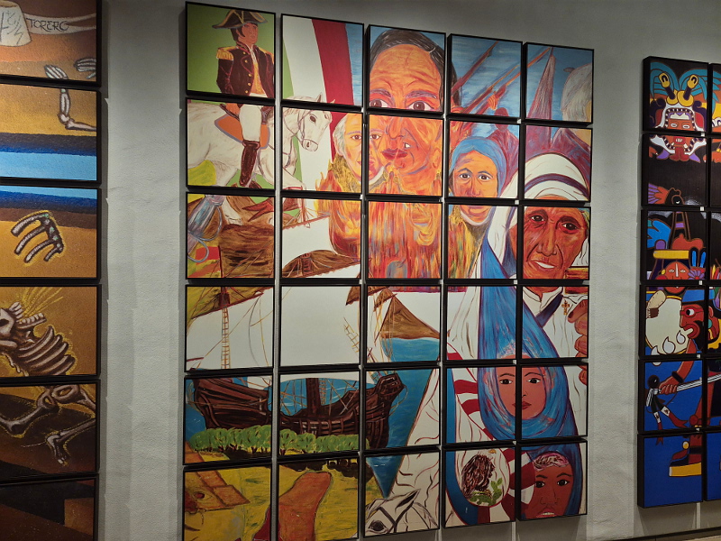 On either side of the tiled photographs are identical plaques that show the complete murals and provide further explanation.
