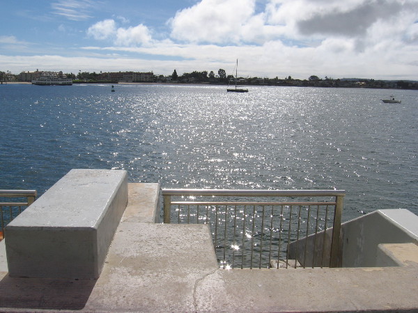 I noticed during my waterfront stroll today that a new wider walkway has been poured to provide better access to Embarcadero Marina Park South. I also noticed from a distance that The Shell’s uniquely designed entrance is really taking shape.