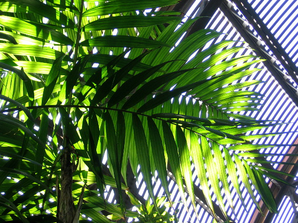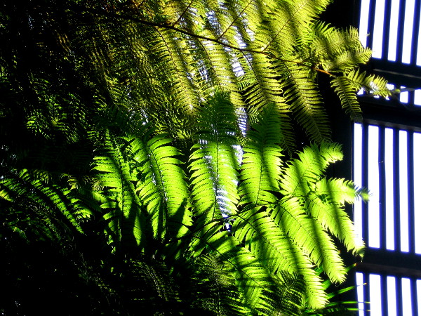 As I wandered through the Botanical Building, my eyes were captivated by brilliant sunlight filtering through the green leaves and surrounding lath. With my small camera I tried to frame patterns of beauty . . .