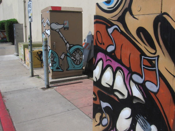 I took photos last weekend during my walk in National City. I first spotted the mural as I headed up Paradise Trail, which follows Marina Way. The Bayshore Bikeway also heads this way, giving passing bicyclists a great view of this very colorful artwork!