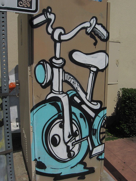 I’m passed by bicyclists who are also heading north.Sea life mosaics decorate concrete benches at the bus stop across from the Solana Beach train station. By artist Michelle Griffoul.