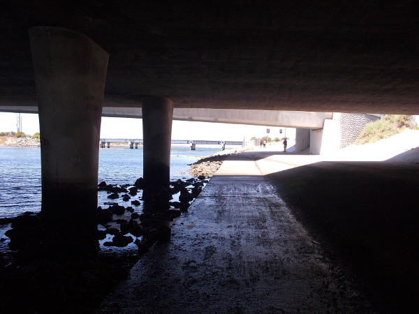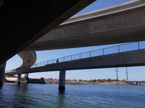 View of Interstate 5 over the Sweetwater River from the Gordy Shields Bayshore Bikeway Bridge.