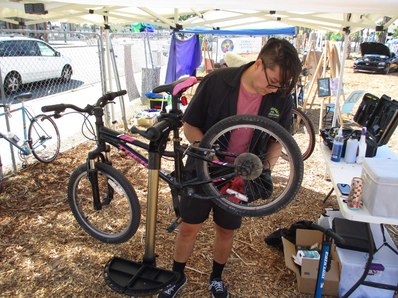 Early in the morning I walked around downtown to visit some of the many Bike Anywhere Day pit stops. The one I found, at the foot of the Broadway Pier, was just getting set up. Some bikes were already present, and I received a big smile from a friendly gentleman representing the Port of San Diego!