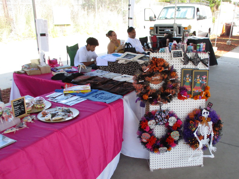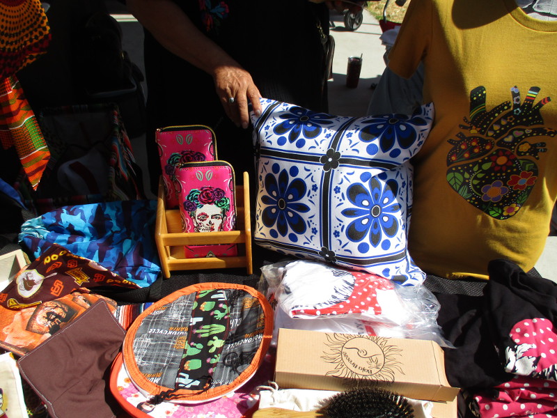 Perfect day for a car show in City Heights! (Okay, the weather was a bit hot.)Cool cars parked near some outdoor sculptures that were created earlier this year by City Heights residents.Check out the awesome new mural on a shipping container painted yesterday by GMONIK!One of my favorites!Are these the coolest bikes you’ve ever seen, or what?The San Diego County Bicycle Coalition was present, fixing up bikes! They have workshop in a corner of this City Heights lot.Smiles appear at the KNSJ radio table!All sort of crafts were for sale by vendors under the outdoor Fern Street Circus tent.You see that beautiful blue pillow by The Urban Art Shop? It’s mine now! (According to their website, they are located at 4201 University Avenue, San Diego, CA 92105, United States, Northern American Continent, Earth, Solar System, Orion Arm, Milky Way Galaxy, Virgo Supercluster, Universe, Third Dimension.)These smiling faces belong to the Speeding Crow Pressing Co. They make custom apparel and goods!Artwork created by Andrew Greyeyes. He has also painted murals in City Heights!