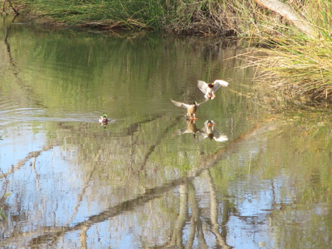 If birds aren’t inside the lush green vegetation feeding or nesting, they’re out on the open water channels, usually as some distance from the trail. I found it best to sit on one of the McCoy Trail’s benches, relax, and let time and serendipity reveal the hidden life.
