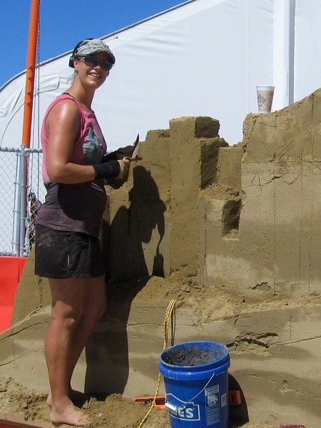 Ilya is new to the San Diego competition this year, and so is Susanne. When I spoke to Susanne, I remembered how Chris Guinto, several days before last year’s competition, told me his still unformed creation was secret. Susanne remarked that plans aren’t so much a secret–it’s that they’re only partially formed when the work begins. The act of sand sculpting is dynamic, and sometimes changes have to be made mid-creation for either artistic or structural reasons. I asked if she ever accidentally knocked down portions of a sand sculpture and she replied: “Yes!” But it’s something you get used to and work around. It’s just something one can expect when working with sand.